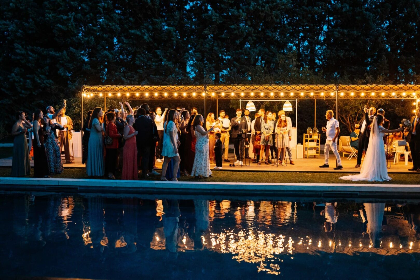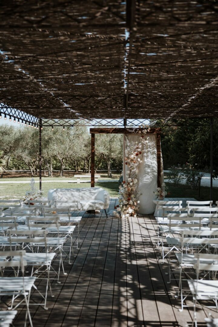 La pergola a été construite avec des matériaux simples et authentiques, tels que l’osier, le bois et fer forgé, toujours dans l’esprit provençal. Avec sa surface de 80 m2, c’est un espace idéal pour organiser différents moments de votre mariage, et parfaitement adaptable à vos goûts et vos envies.