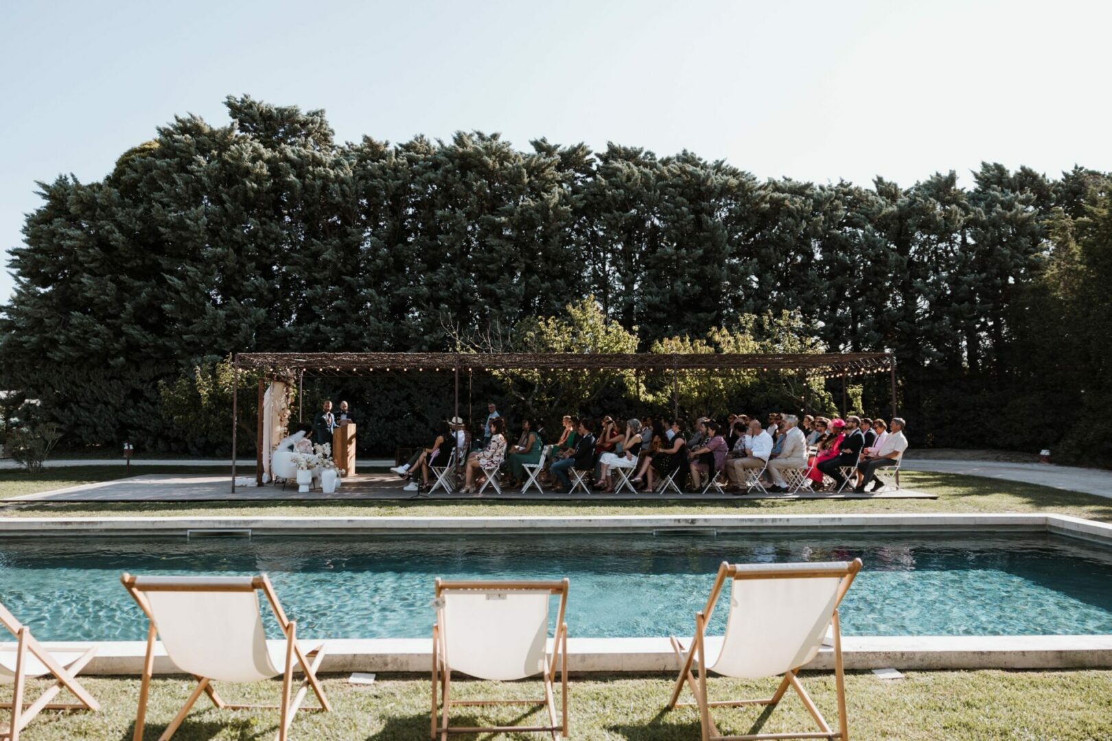 Au coeur des jardins, la pergola vous offre une vue imprenable sur le domaine. Cet espace polyvalent vous offre la possible d’organiser un cocktail, une cérémonie laïque, un welcome diner ou un brunch. L’espace est sonorisé, éclairé et équipé de très nombreuses prises pour vos différentes prestataires.